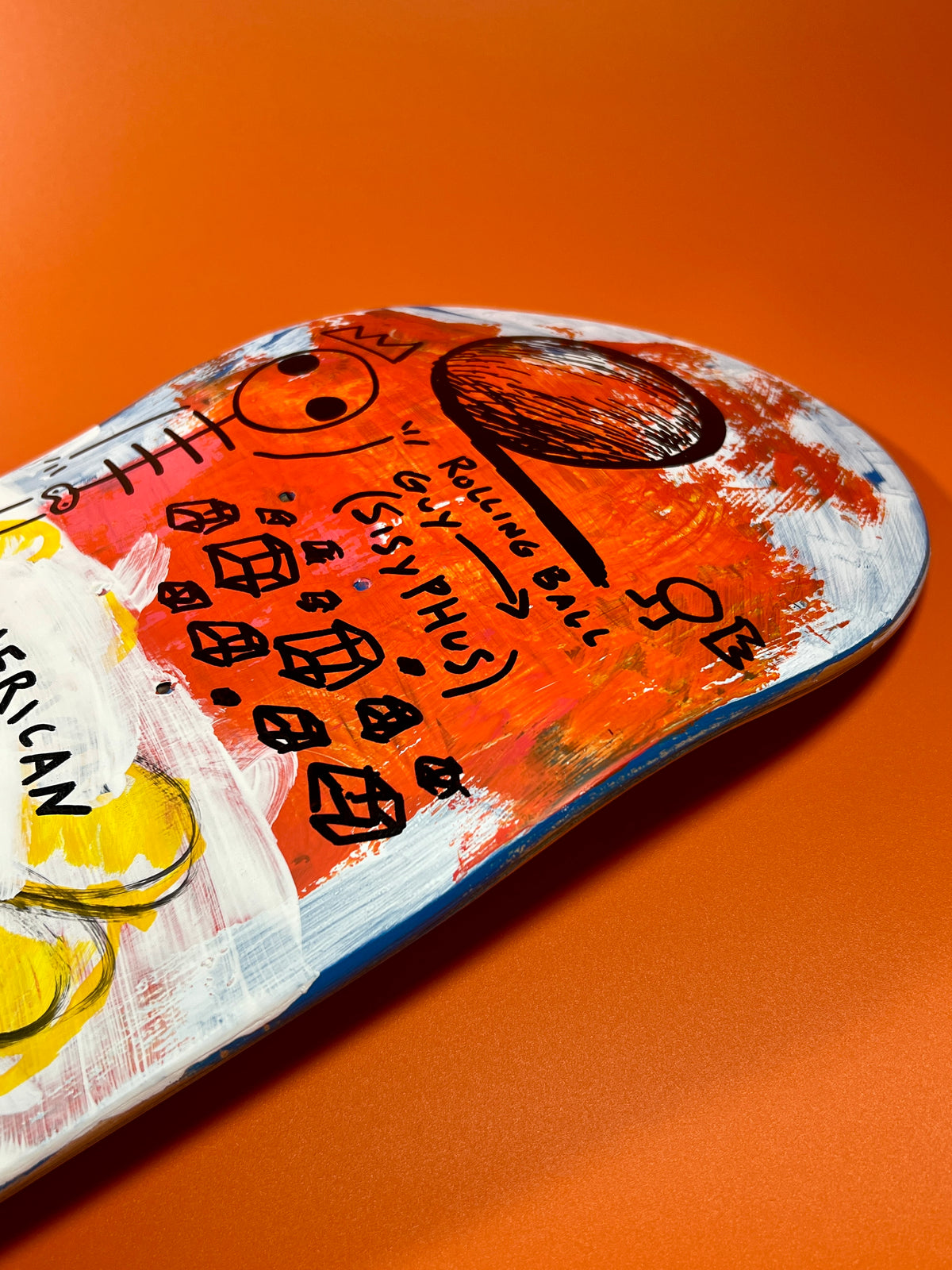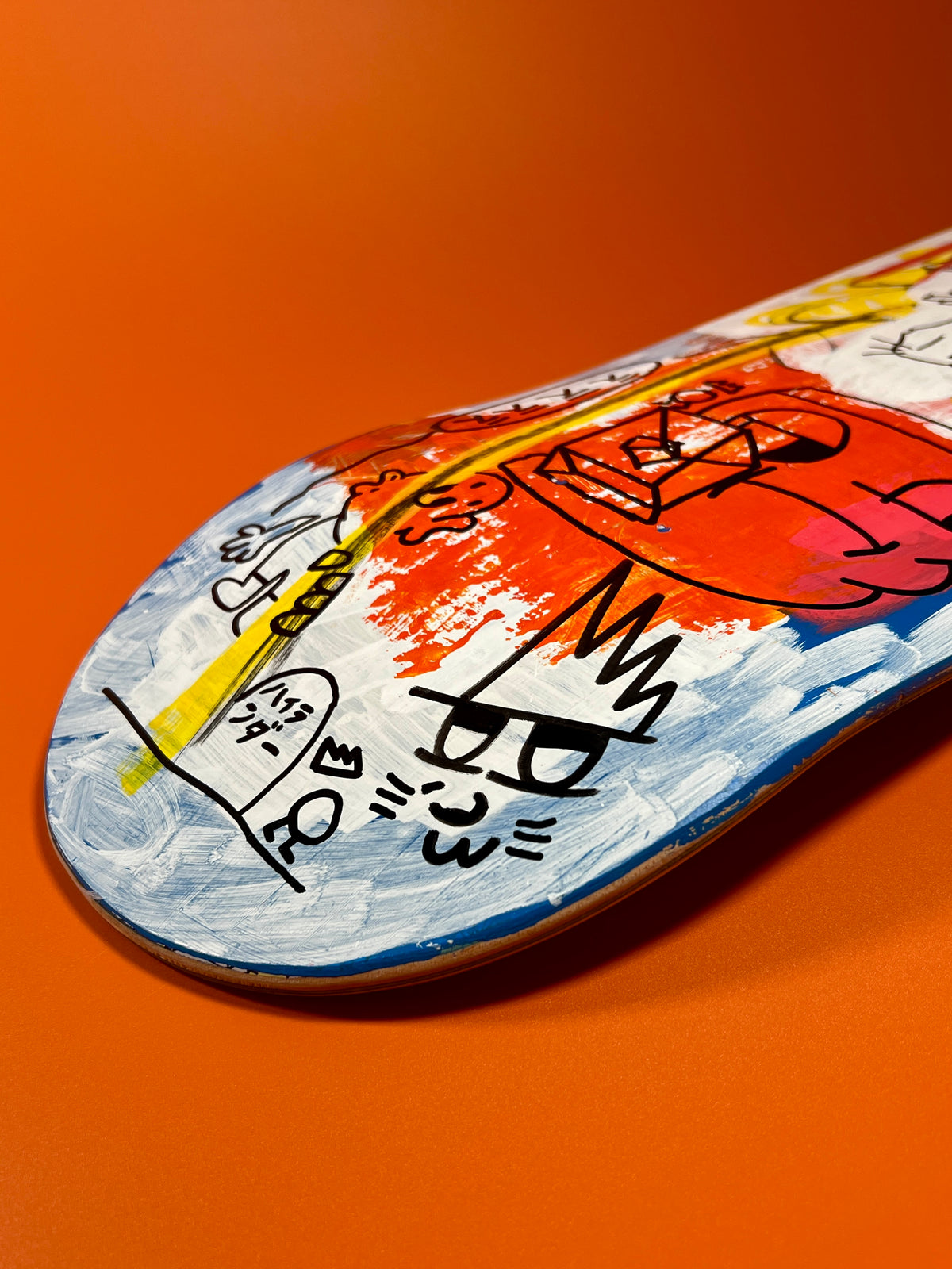 Made in Tokyo, Japan. Hand-painted skateboard deck on Canadian maple. Acrylic artwork with a matte finish, designed for skating or display.