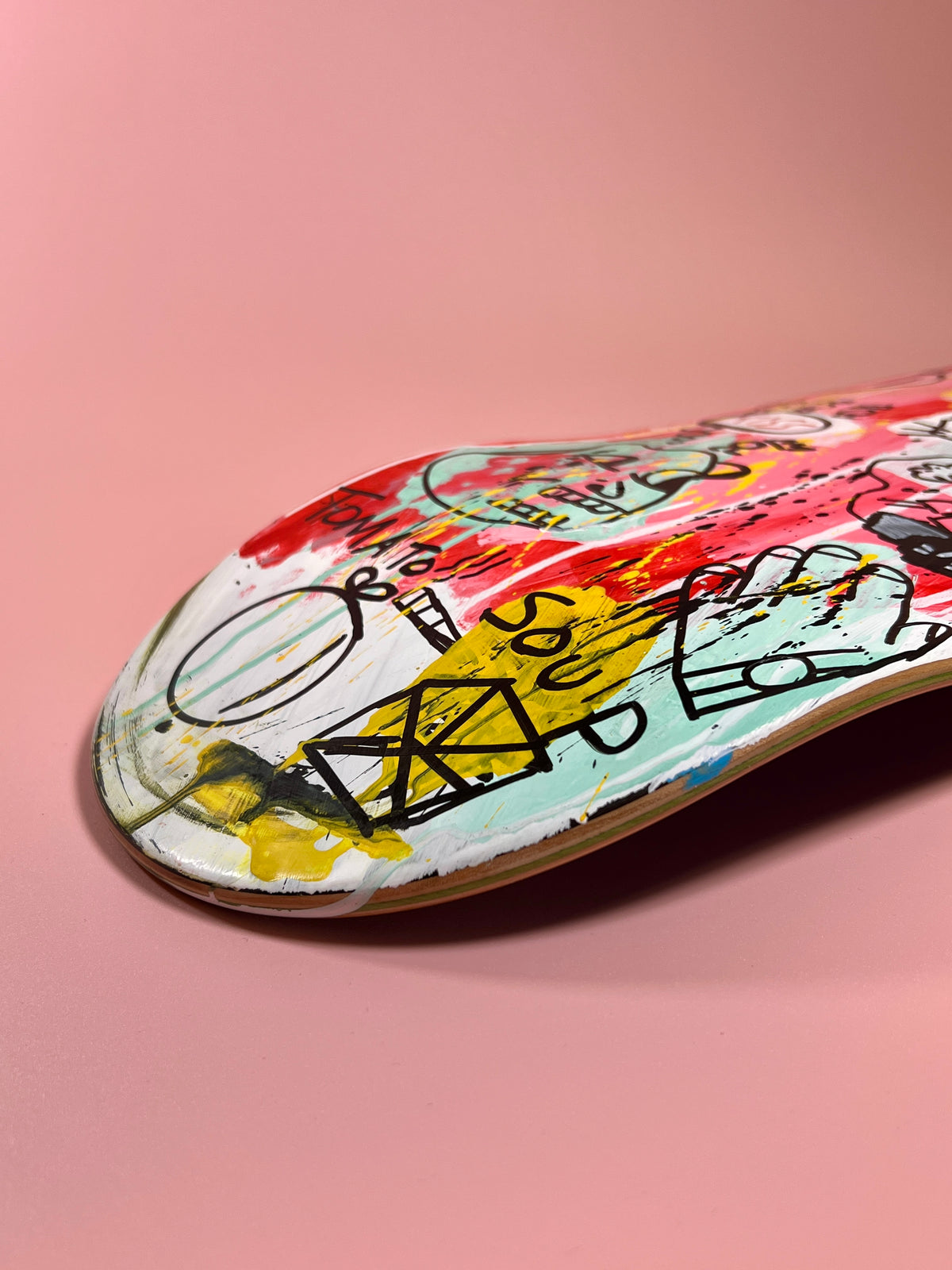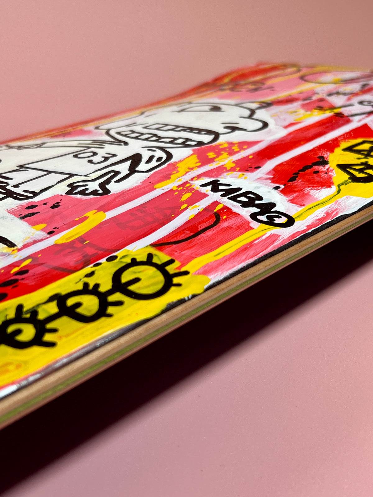 Made in Tokyo, Japan. Hand-painted skateboard deck on Canadian maple. Acrylic artwork with a matte finish, designed for skating or display.