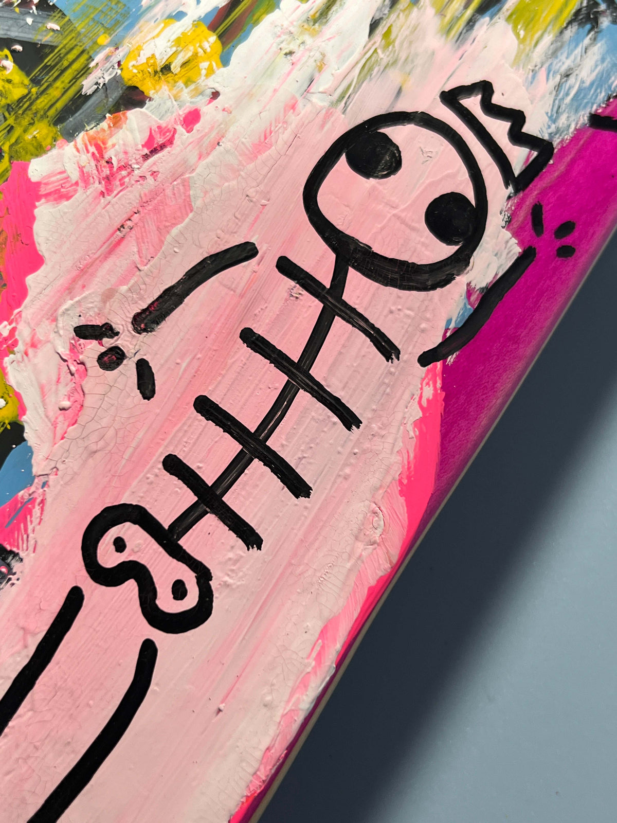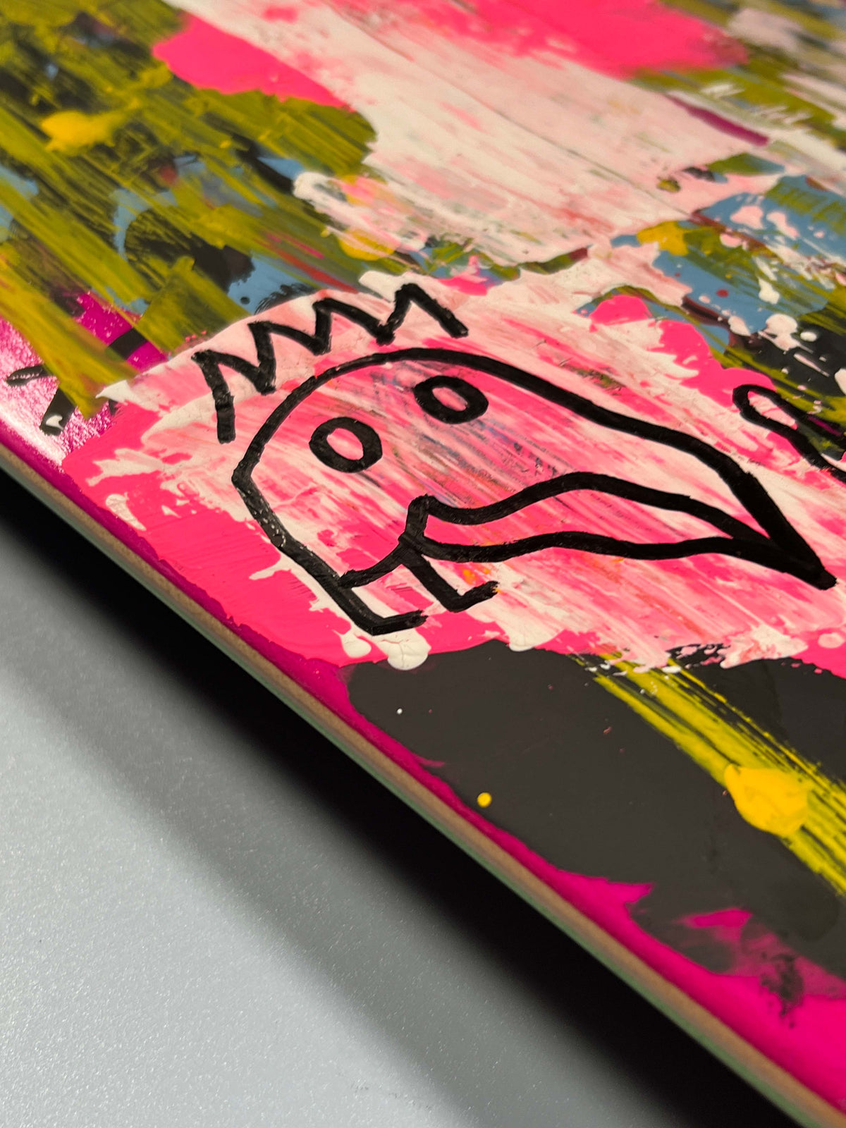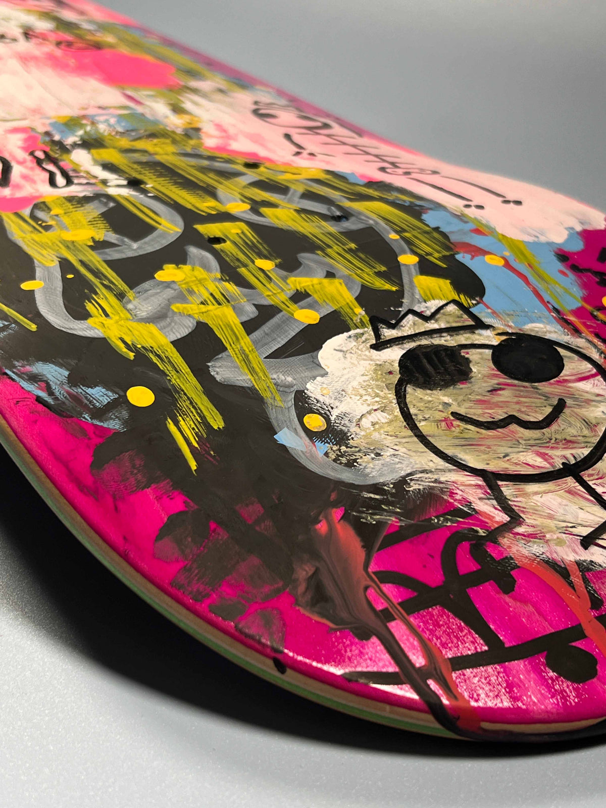 Made in Tokyo, Japan. Hand-painted skateboard deck on Canadian maple. Acrylic artwork with a matte finish, designed for skating or display.
