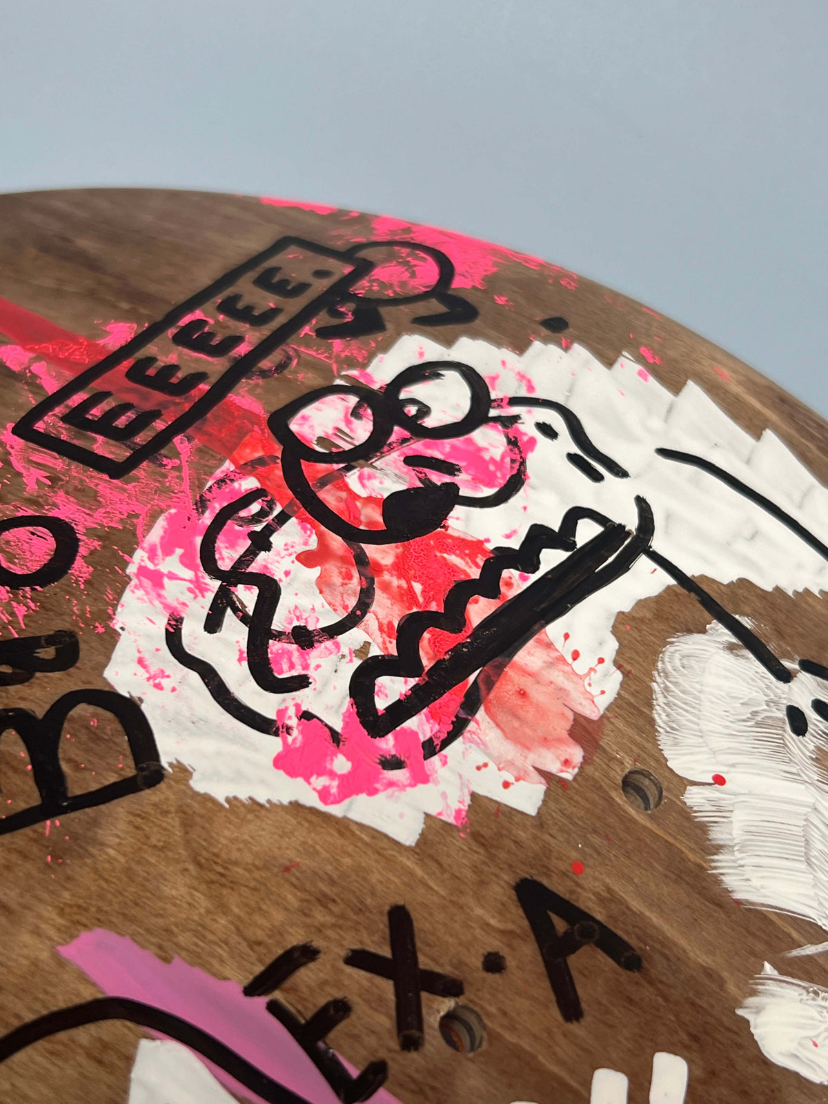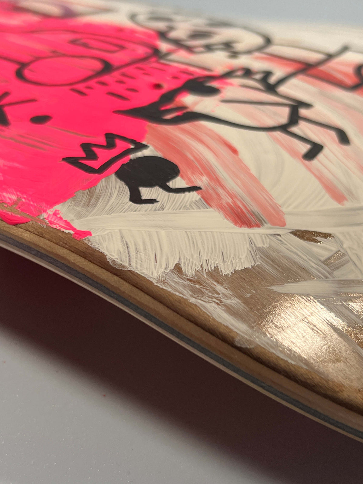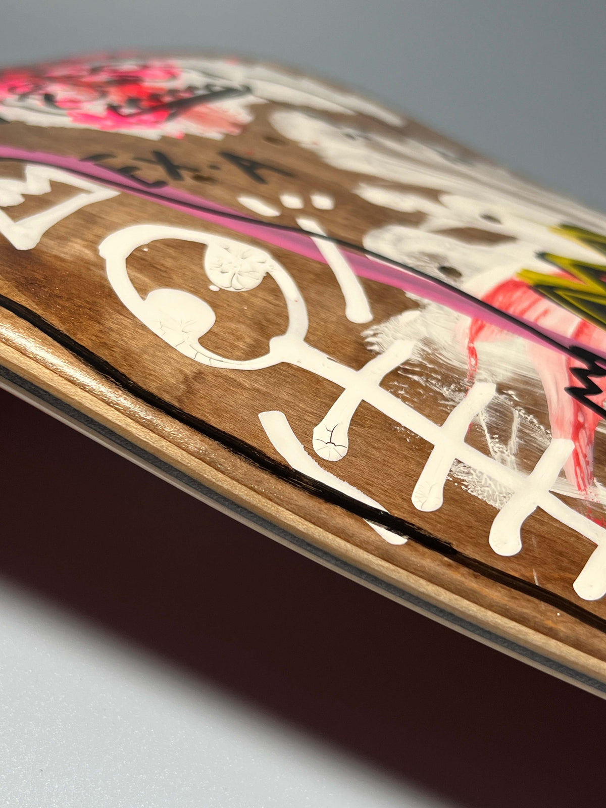 Made in Tokyo, Japan. Hand-painted skateboard deck on Canadian maple. Acrylic artwork with a matte finish, designed for skating or display.