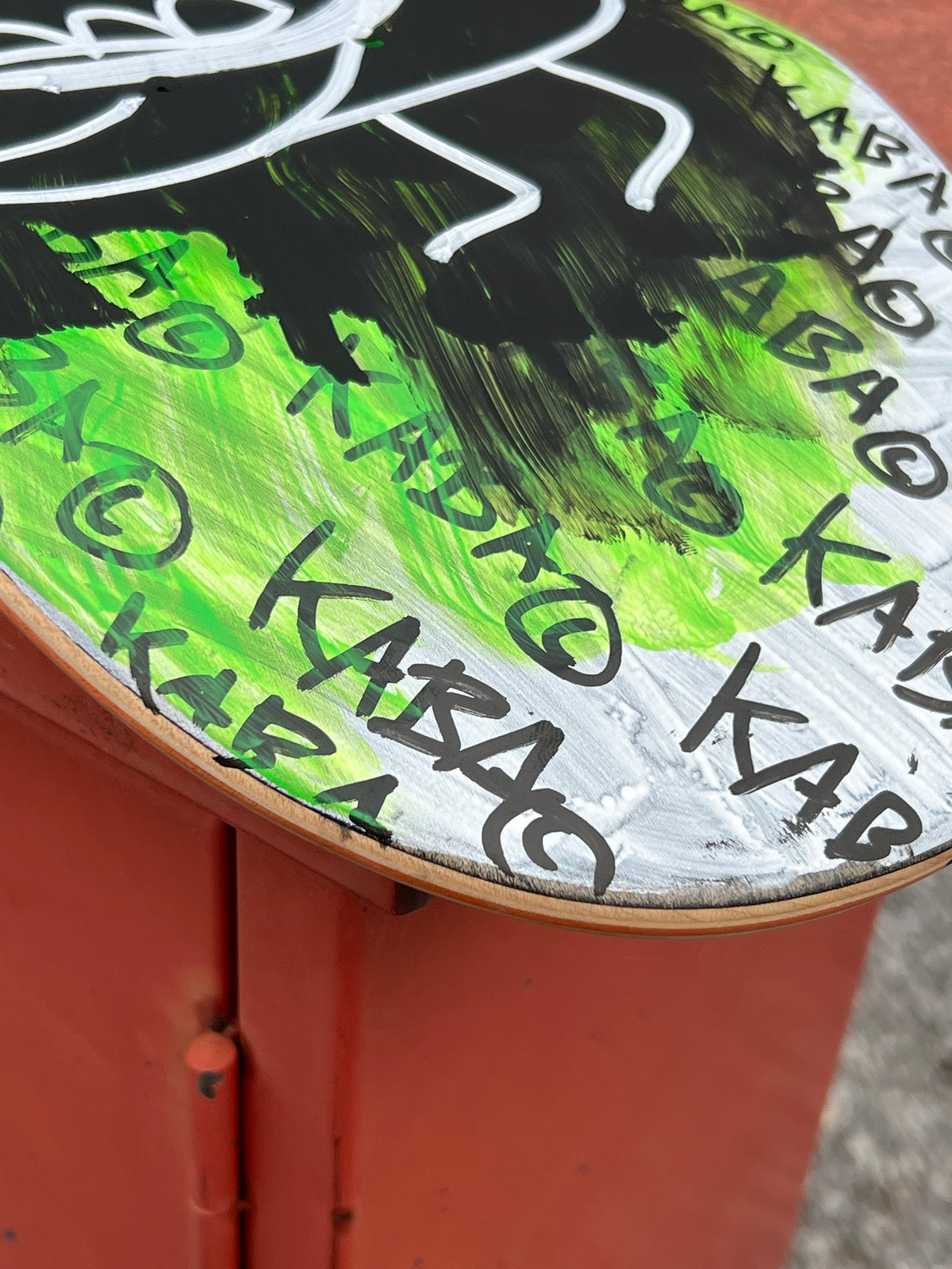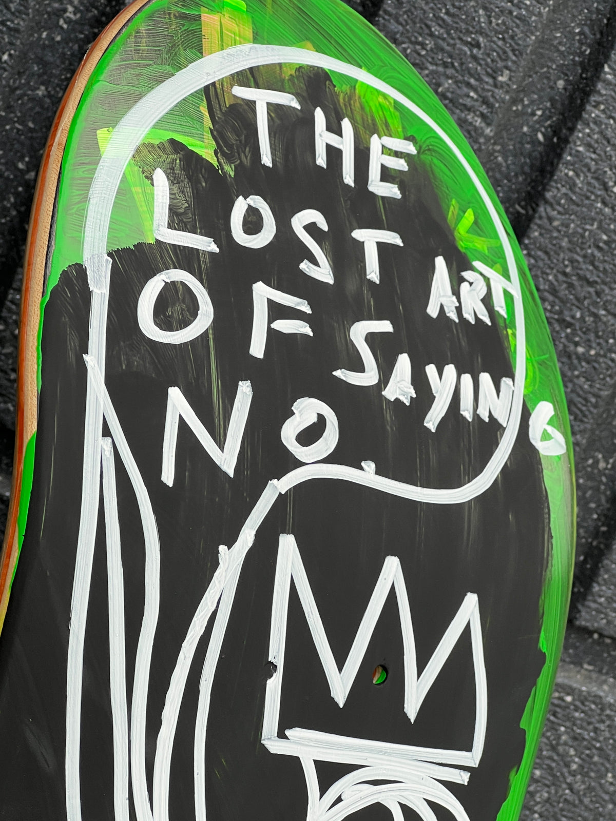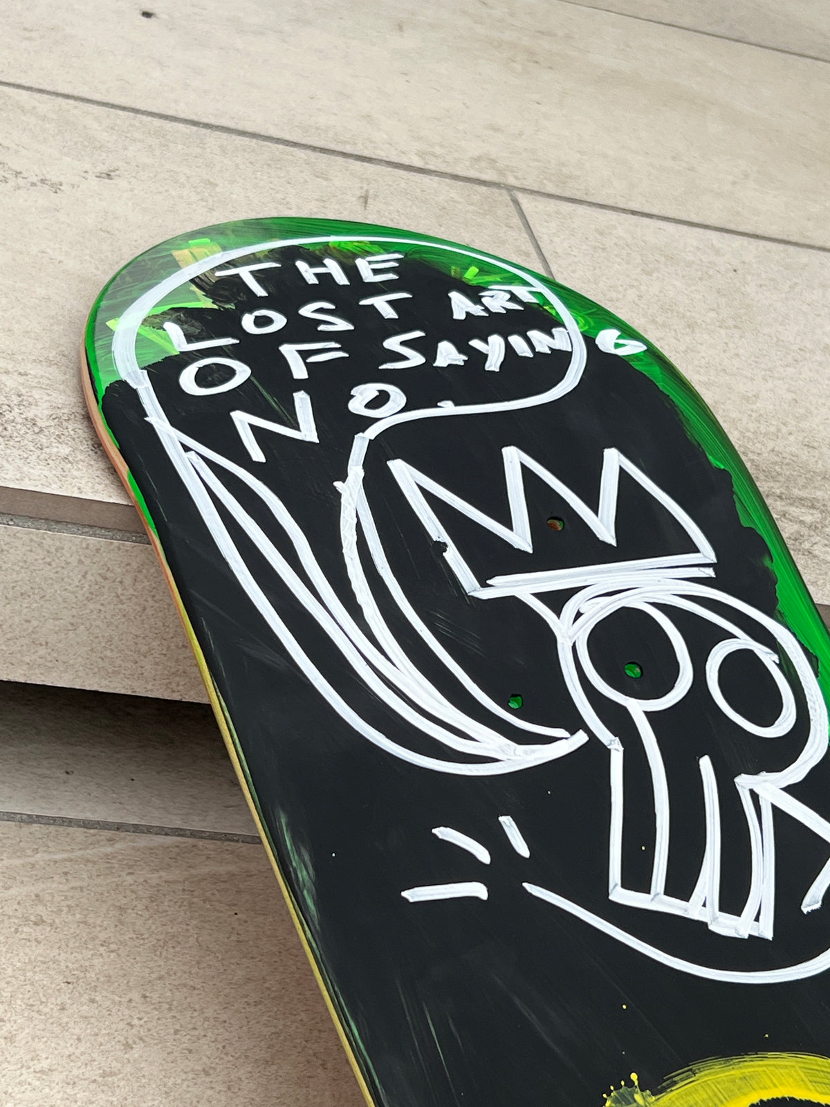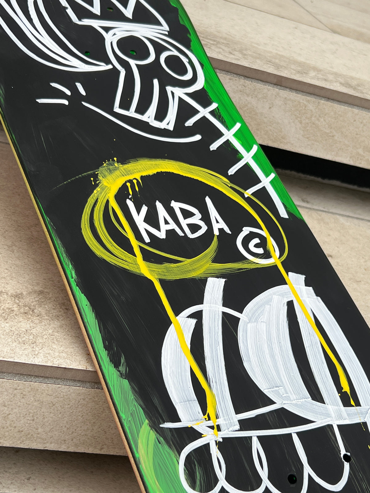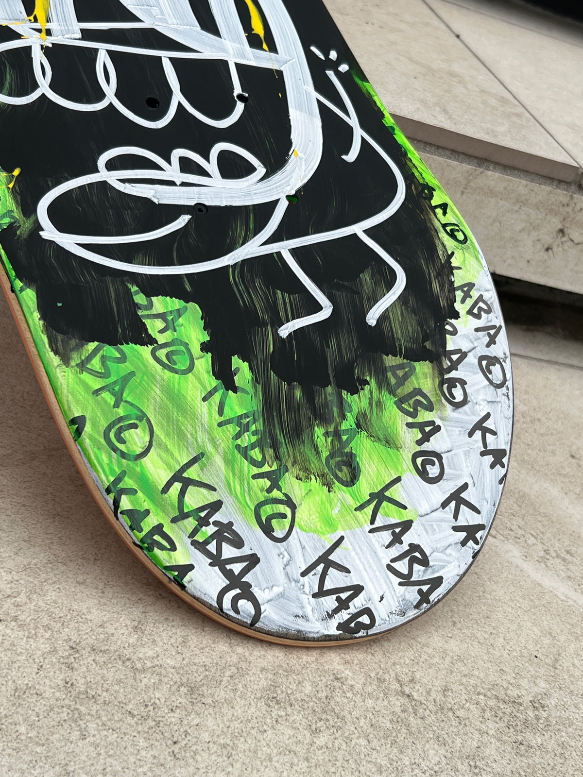 Made in Tokyo, Japan. Hand-painted skateboard deck on Canadian maple. Acrylic artwork with a matte finish, designed for skating or display.
