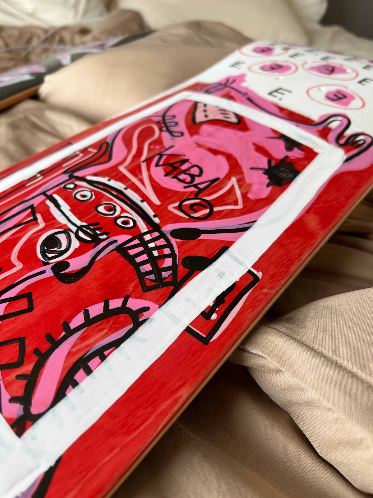 Made in Tokyo, Japan. Hand-painted skateboard deck on Canadian maple. Acrylic artwork with a matte finish, designed for skating or display.