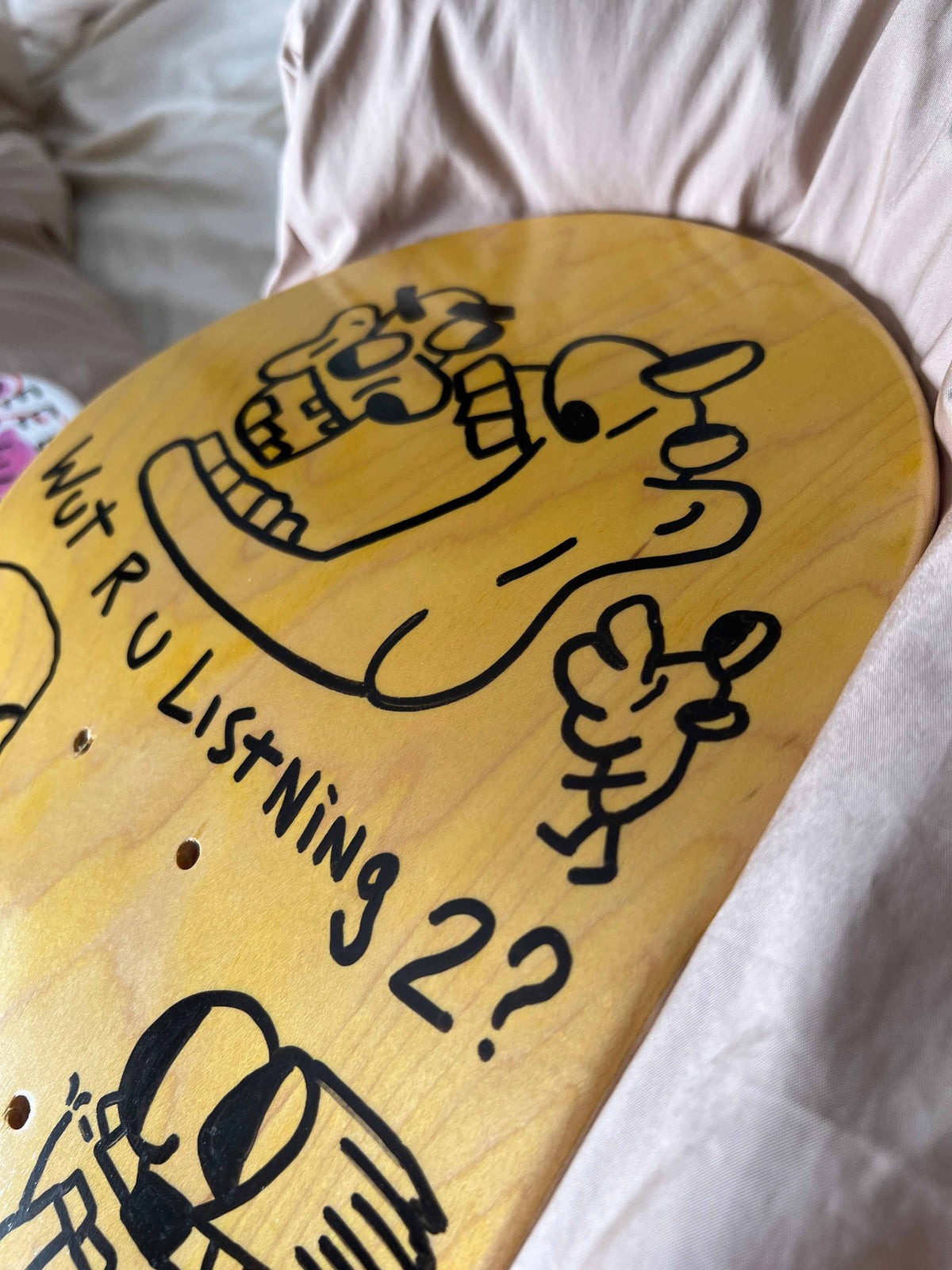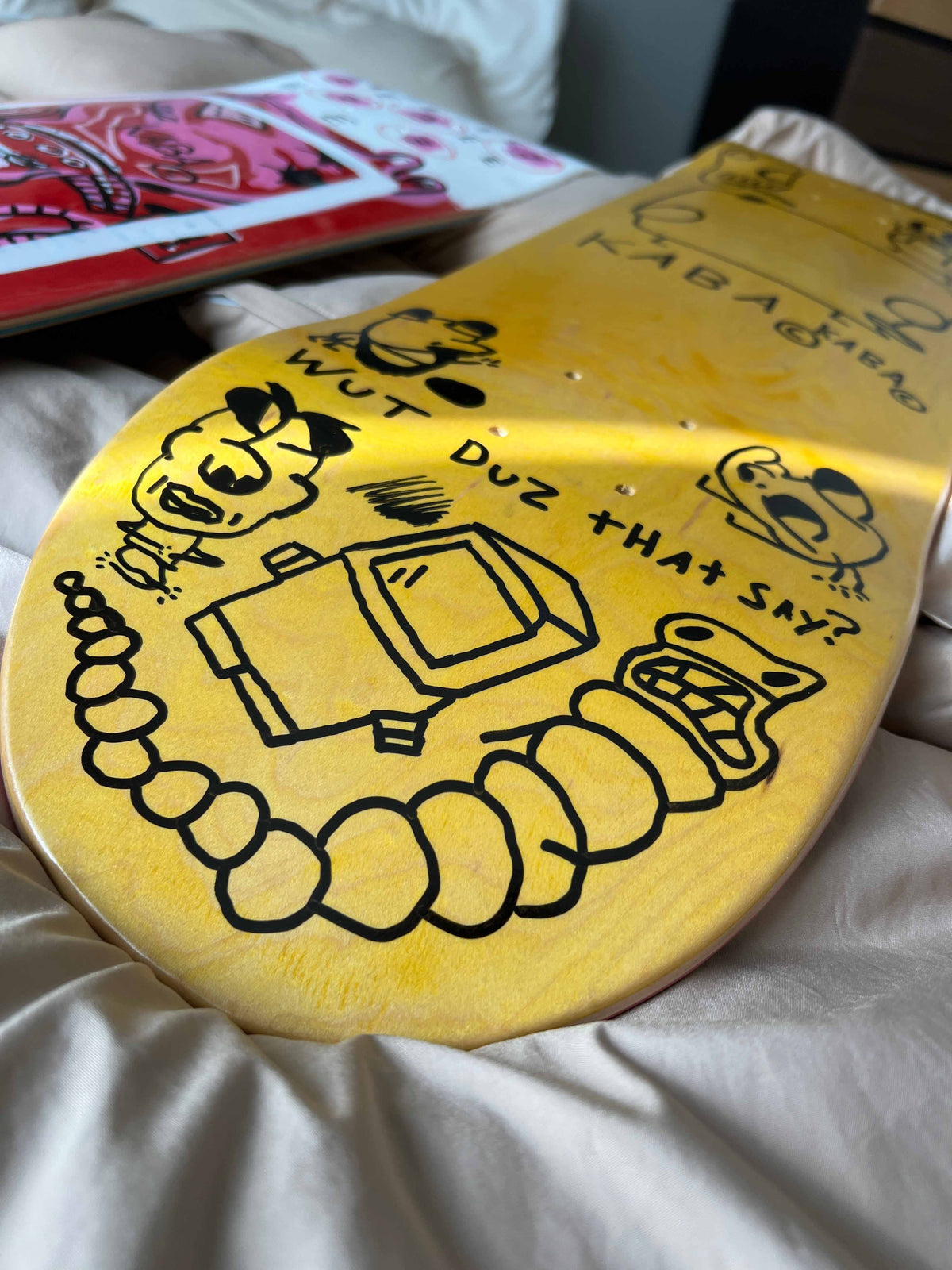 Made in Tokyo, Japan. Hand-painted skateboard deck on Canadian maple. Acrylic artwork with a matte finish, designed for skating or display.