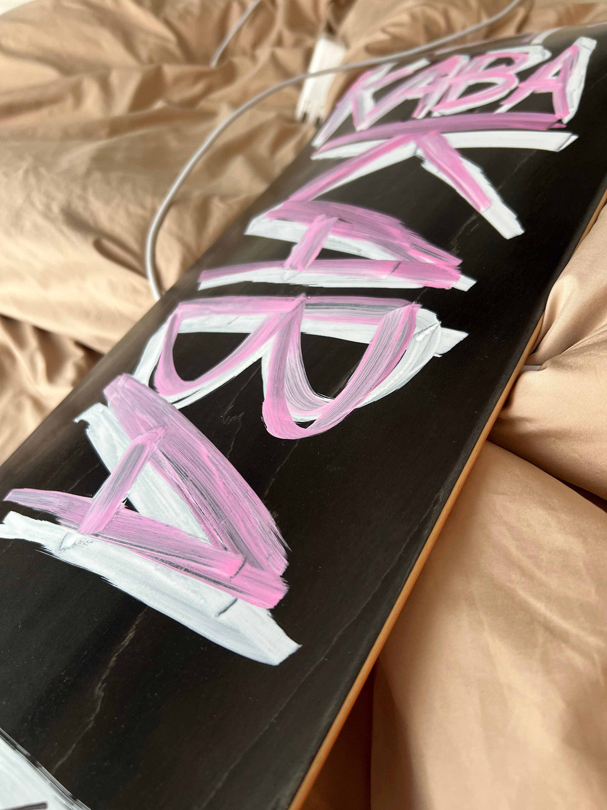 Made in Tokyo, Japan. Hand-painted skateboard deck on Canadian maple. Acrylic artwork with a matte finish, designed for skating or display.