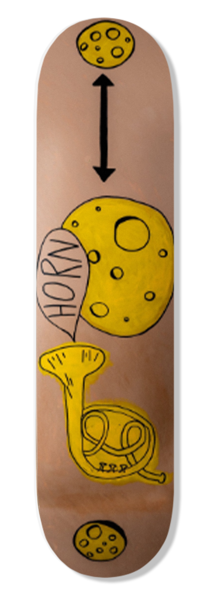 ピンクムーンシリーズの5番目のデッキ。ホーン。このデッキはアクリルで手塗りされ、エポキシ樹脂で覆われていました。スケートやウォールアートに最適です。